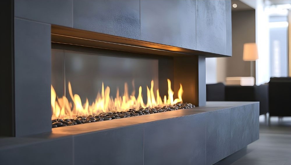 - Realistický plameň a štýlový dizajn – moderné plynové krby majú keramické polená alebo dekoratívne kamene, ktoré vytvárajú prirodzený vzhľad plameňa.