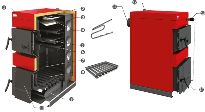 Vodný plášť úplne obklopuje spaľovaciu komoru, čo zabezpečuje efektívne absorbovanie tepla a rovnomerné vykurovanie.