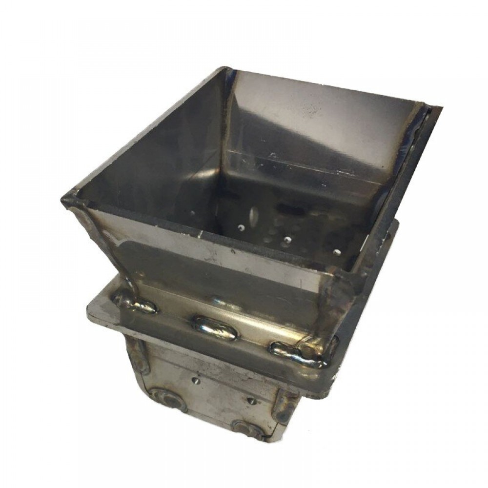 Kôš na horák z nehrdzavejúcej ocele AISI 430, hrúbka steny 2,5 mm a otvor pre vykurovacie teleso (zapaľovač) je v zadnej časti hrnca.